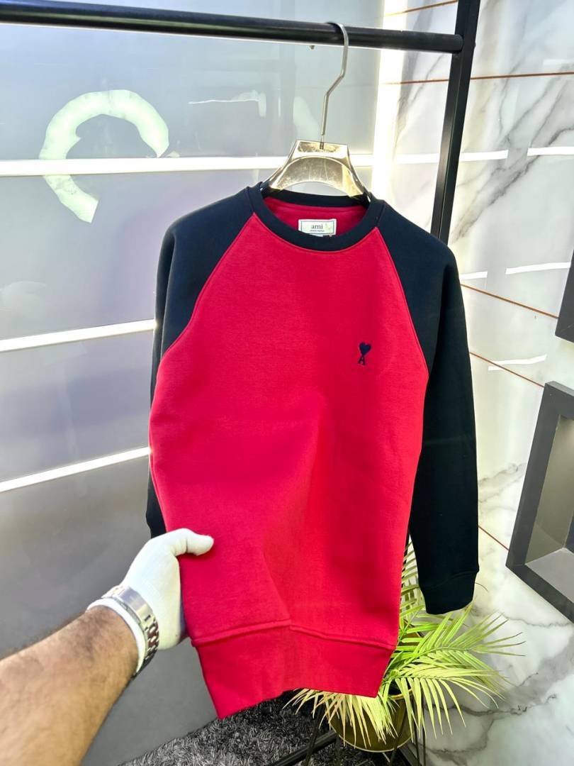 Ami Logo Imported Red Super Premium Sweatshirts F3292-RE