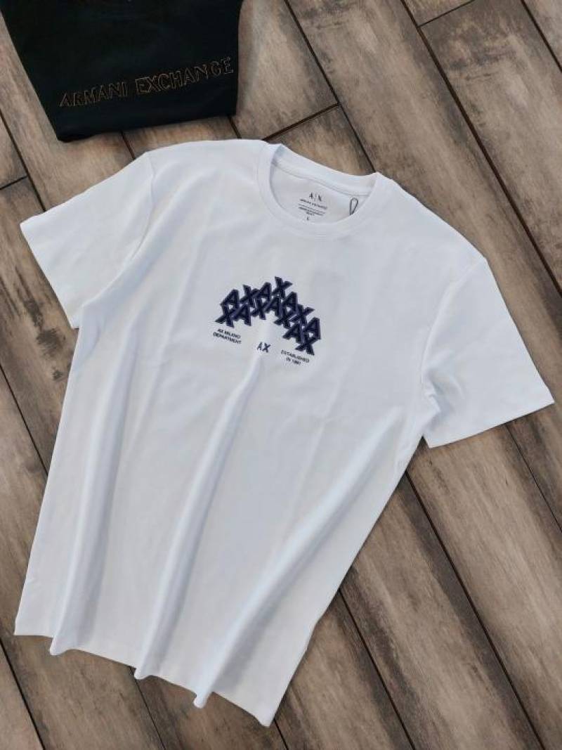 Arman i Exchange White Premium Imported 240 GSM Interlock Fabric Round Neck Printed Logo Tshirt 3019