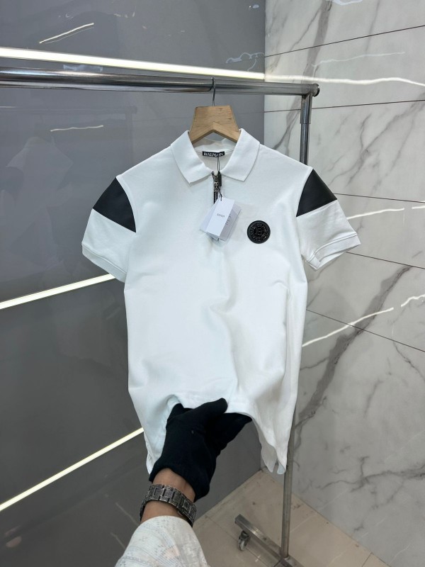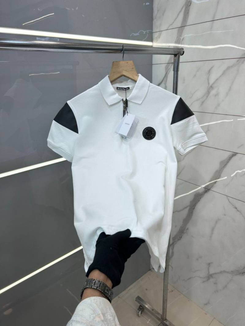 Balmai n designer polo with rubber metal logo With 240Gsm Interlock Cotton Lycra Fabric Polo (1542)