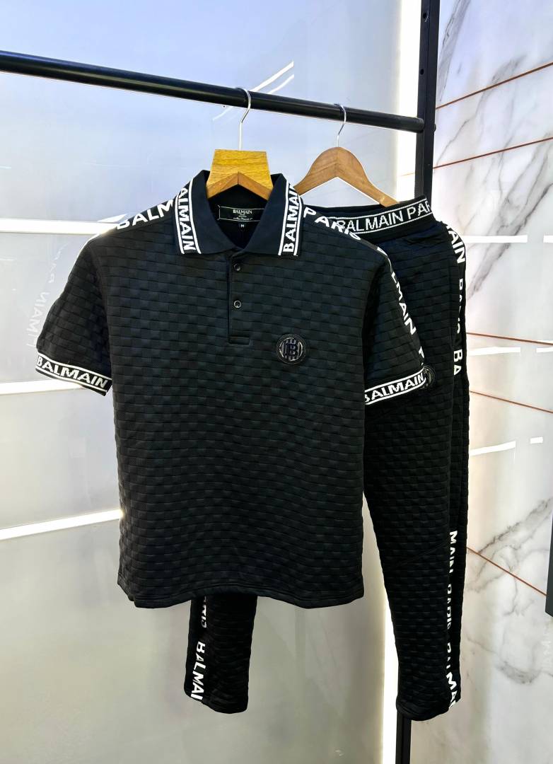 Balmai n Paris Black Imported Embossed Print Premium Track Suit Brand Carry Bag Packing F2865-BL