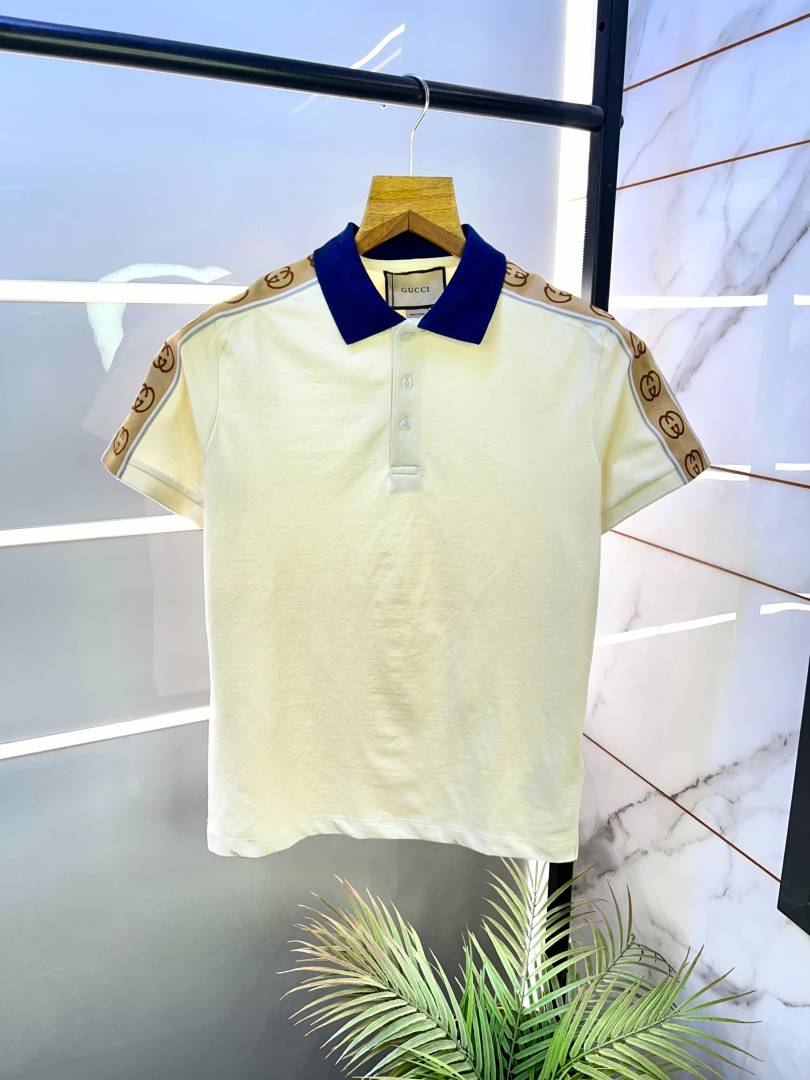 Gucc i Beige Premium Polo T shirt With 240 gsm interlock cotton lycra fabric and Collar Design 2429