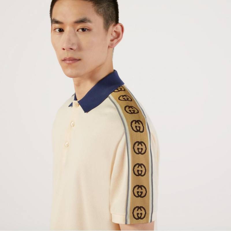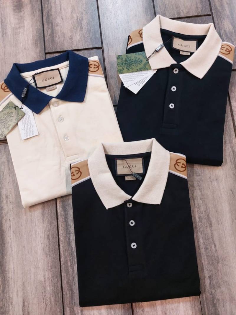 Gucc i Beige Premium Polo T shirt With 240 gsm interlock cotton lycra fabric with Collar Design and Pocket style 2625