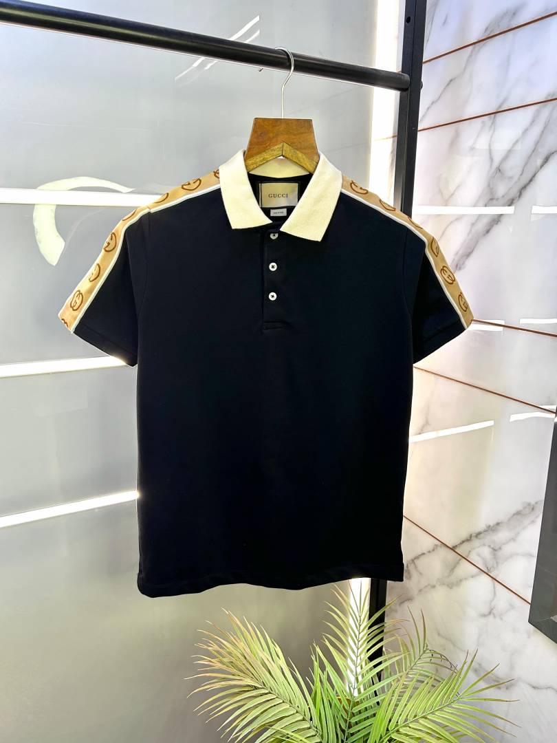 Gucc i Black Imported Polo Neck Premium Collar T-shirt F2915-BL