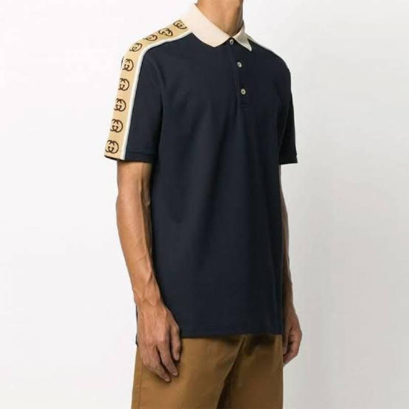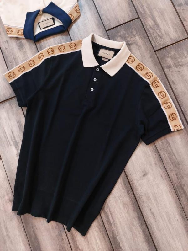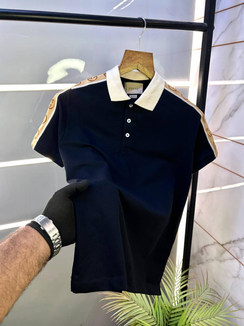 Gucc i Navy Blue Premium Polo T shirt With 240 gsm interlock cotton lycra fabric with Front Strip 2628
