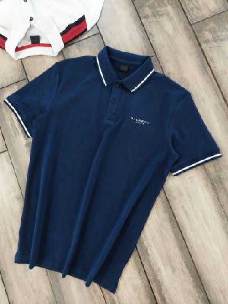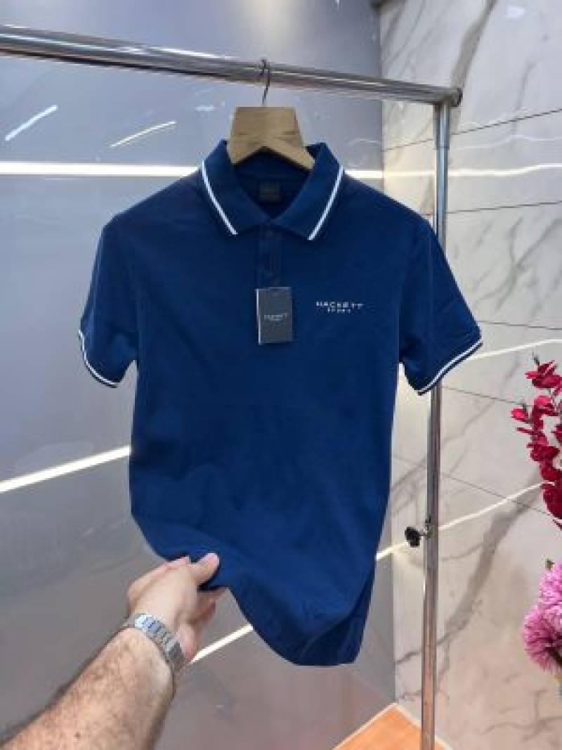 Hacke t Inkblue Premium 240 gsm interlock compact cotton fabric Polo Tshirt with Shoulder Strip and Emboss Logo 3213