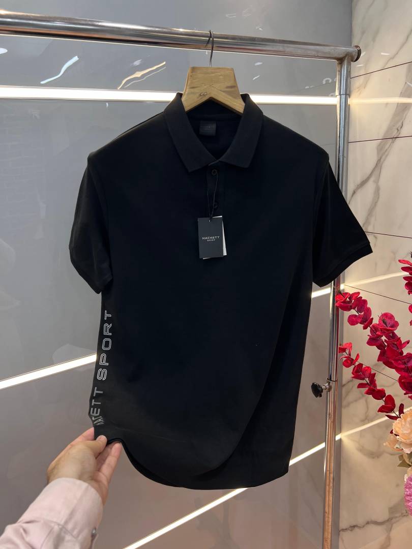 Hacket Black Premium Polo T shirt With 240 gsm Pique fabric with Shoulder Strip Design and Emboss Logo 3009
