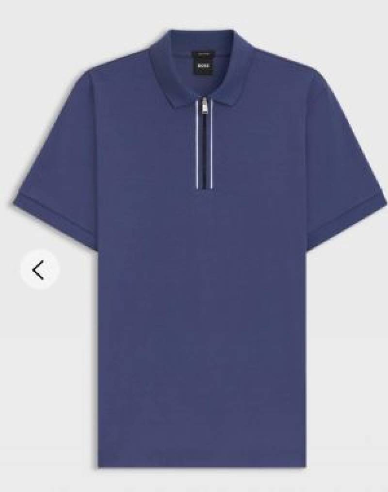 Hugo Bos s Navy Premium 240 gsm interlock compact cotton fabric Polo Tshirt with Front Design and Zip Style 3273