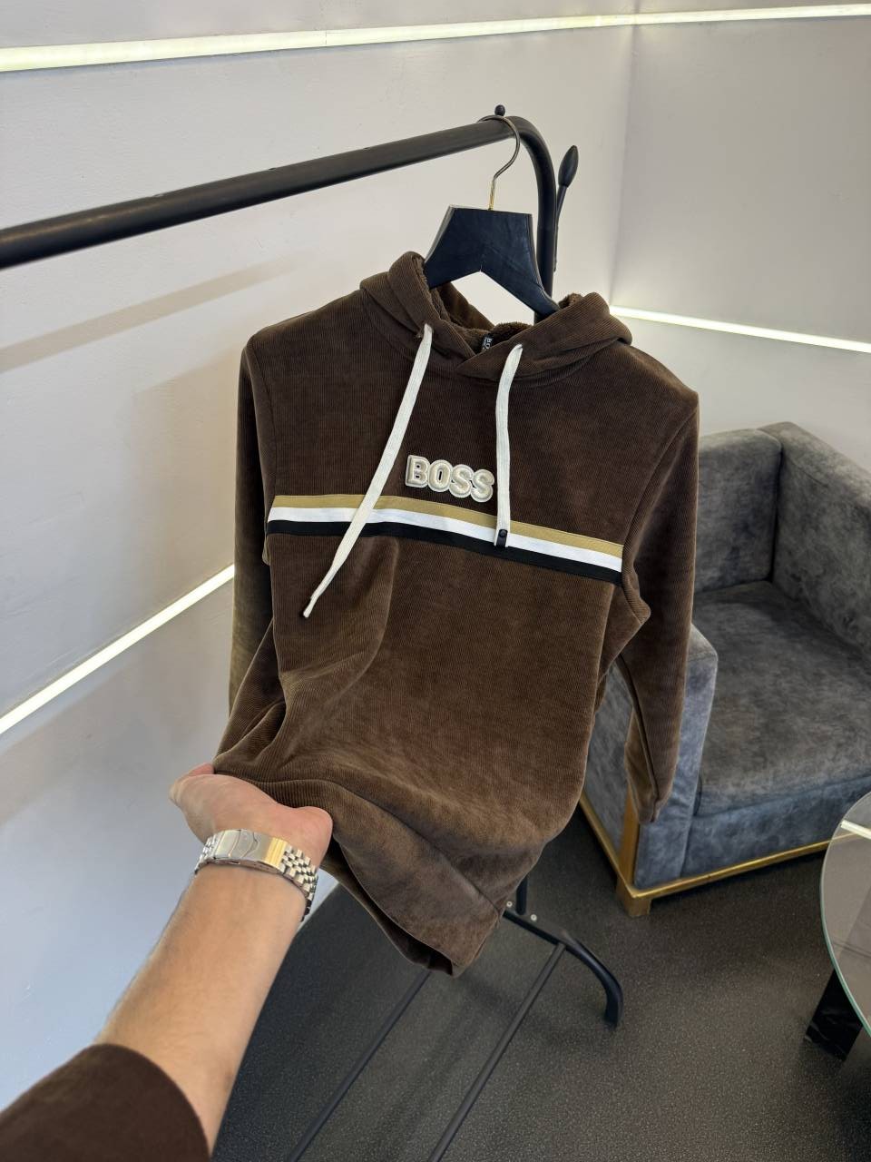 Hugoboss brown imported hoodie with embroidery logo and two side pocket