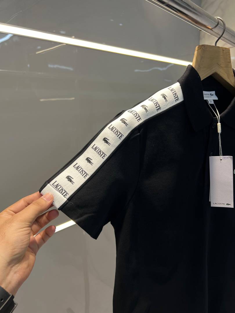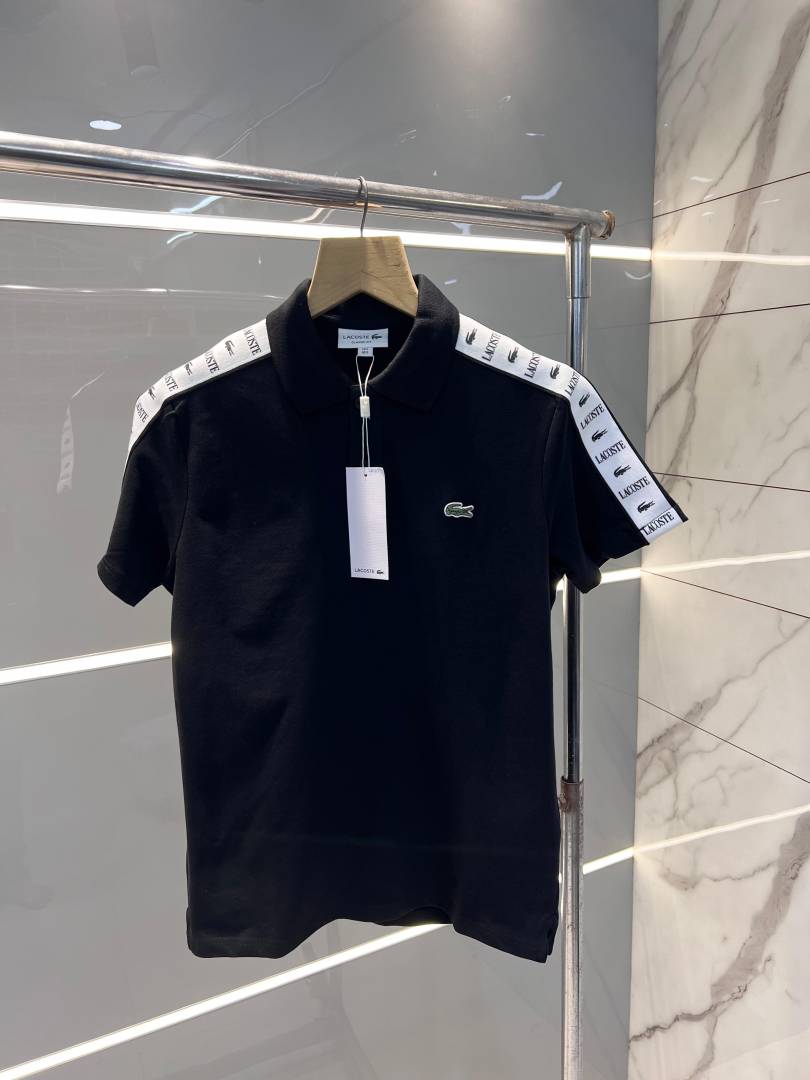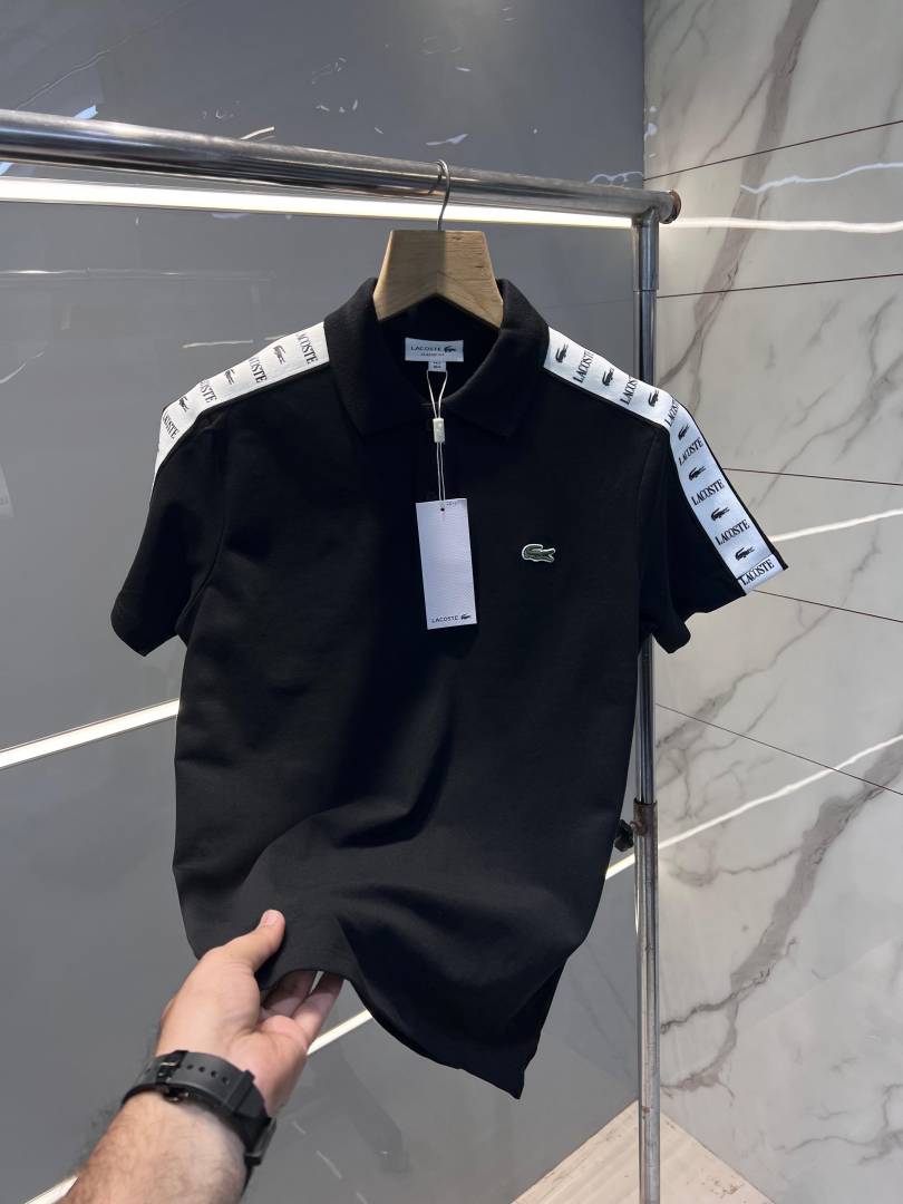 Lacost e Black Premium Cotton Lycra Pique fabric Polo Tshirt with Shoulder Strip Design and Emboss Logo 2840