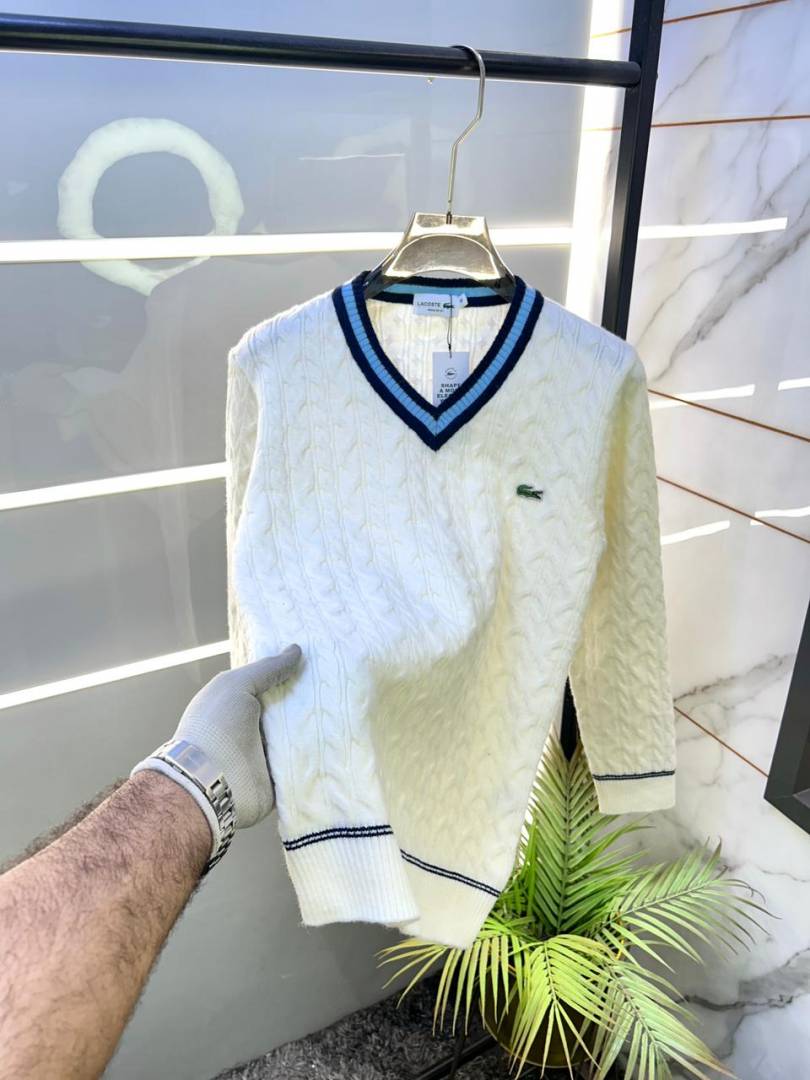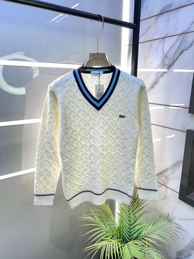 Lacost e White Imported knitted V Neck Super Premium Pullovers F3349-WH