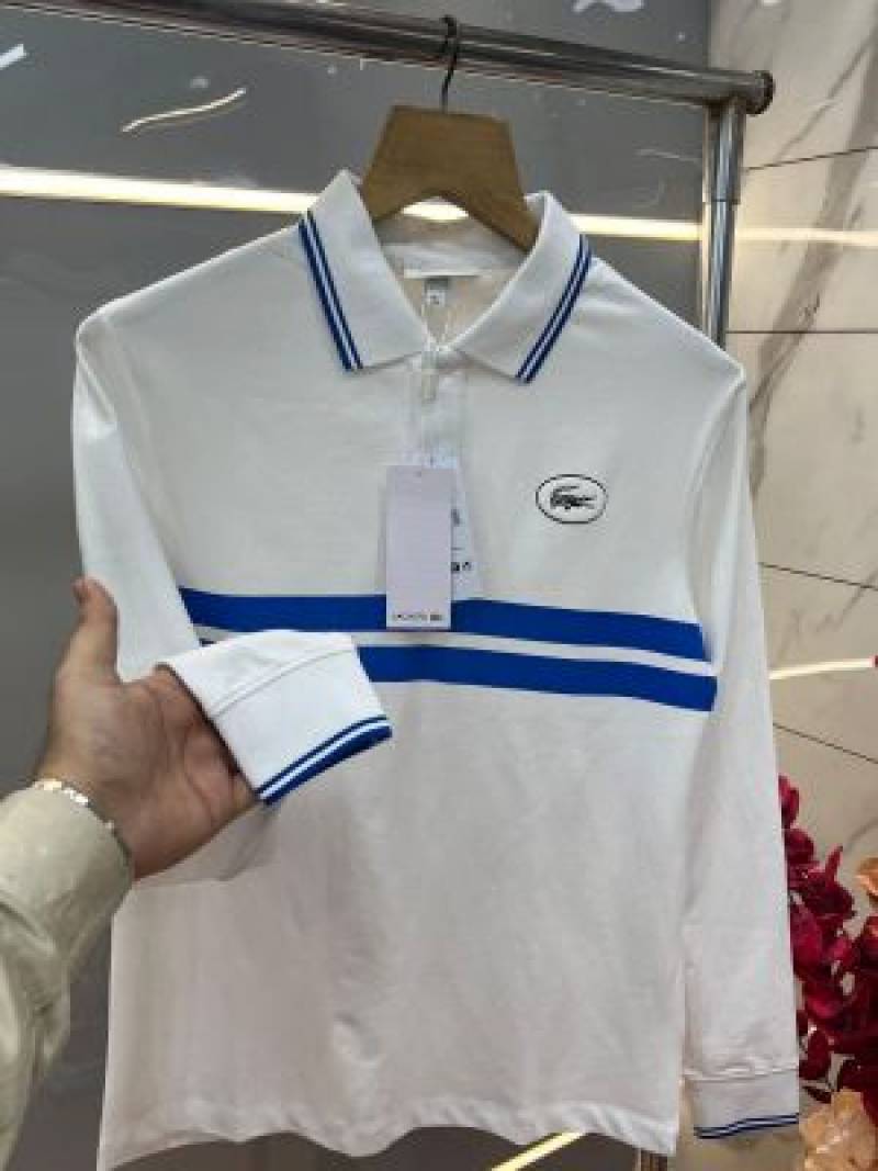 Lacost e White Premium Cotton Lycra Pique fabric Polo Full Sleeves Tshirt with Collar Design and Patch Logo 3293