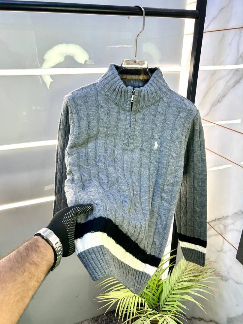 Ralph_Lauren Grey Imported knitted Super Premium Pullovers F3179-GY
