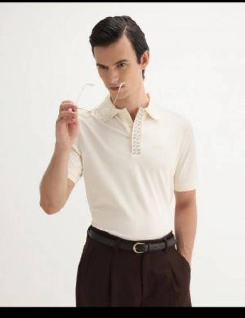 Gucc i Beige Premium Polo T shirt With 240 gsm interlock cotton lycra fabric with Collar Design and Pocket style 2625