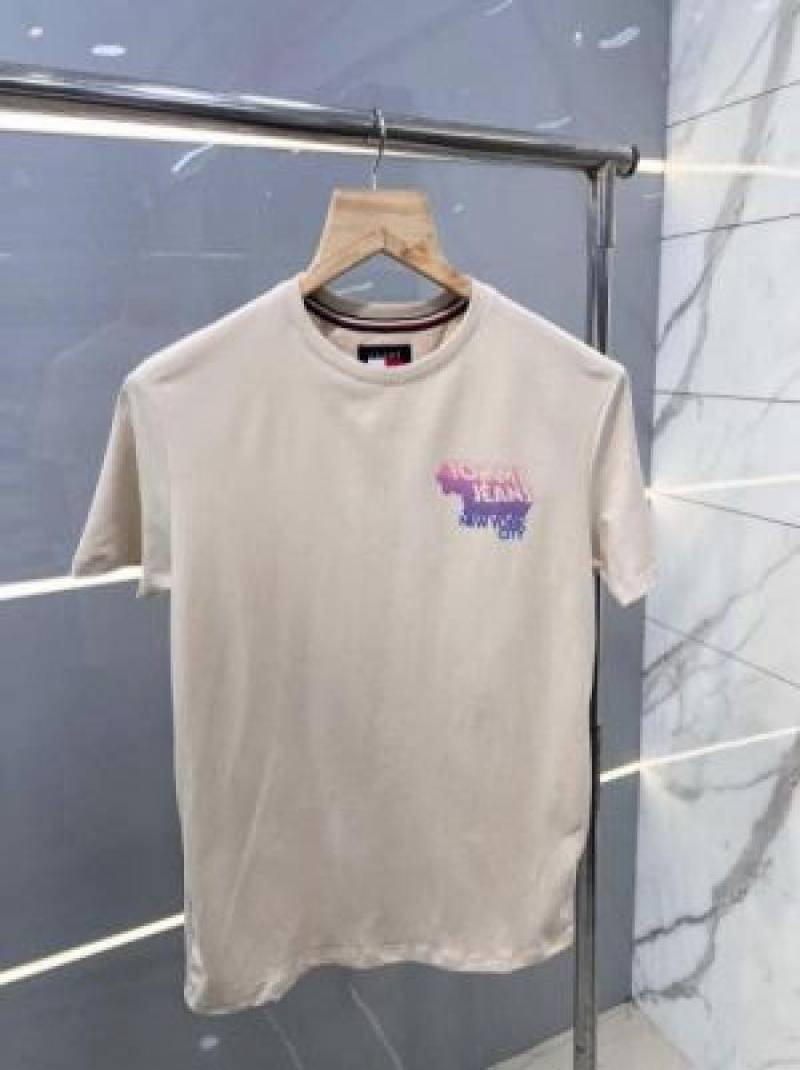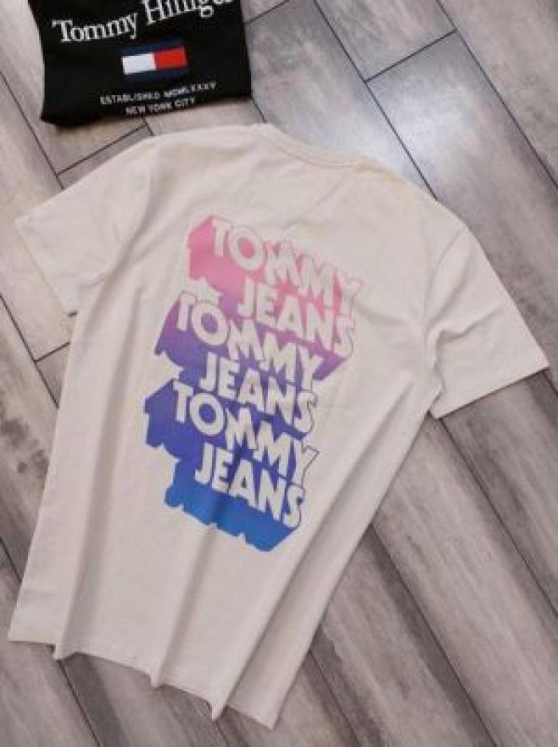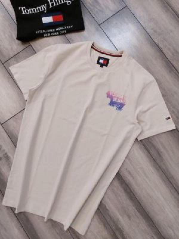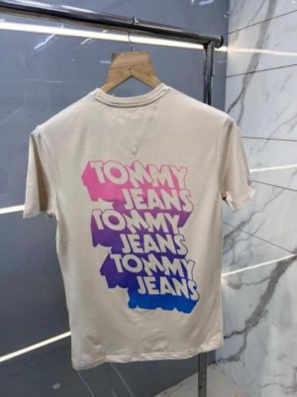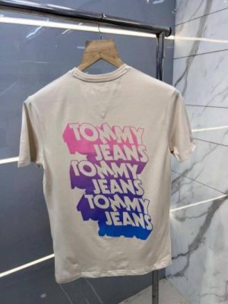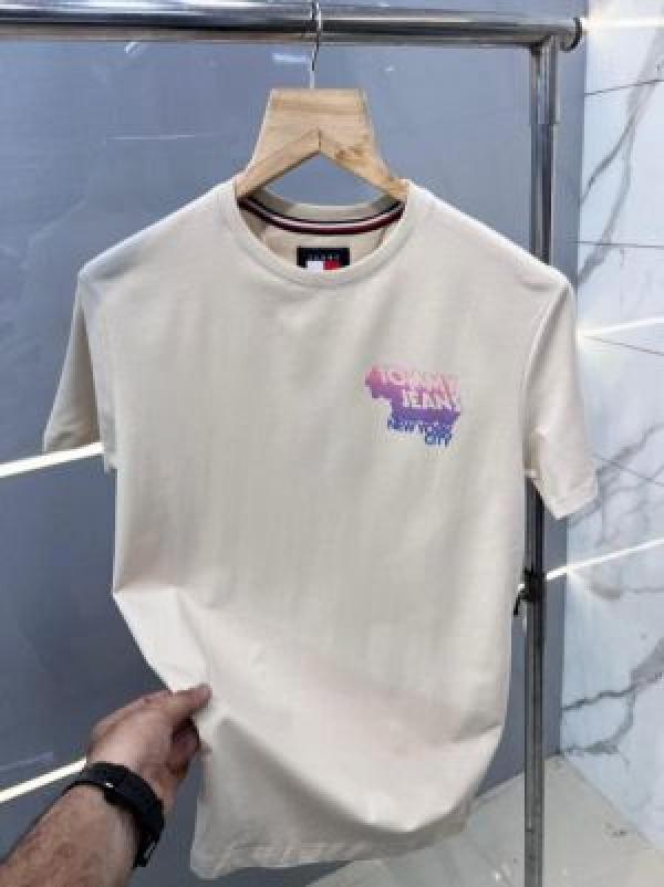 Tomm y Hilfige r Premium Imported Round Neck T Shirts Printed Design Beige 2363
