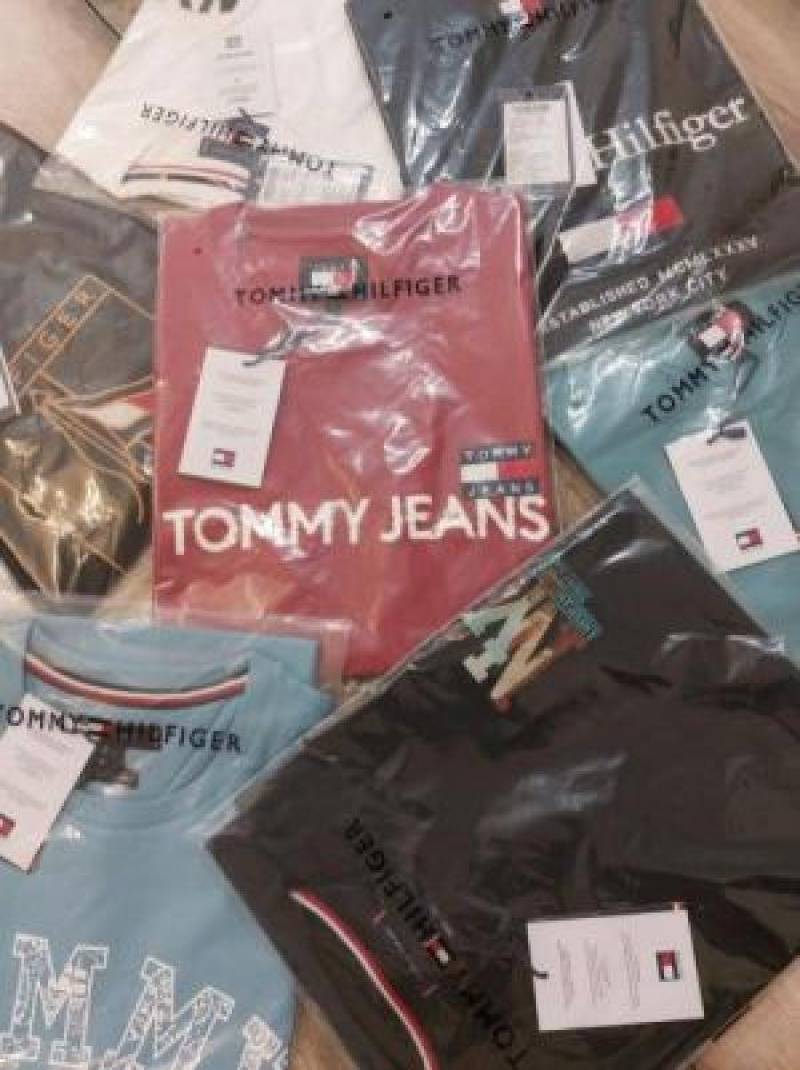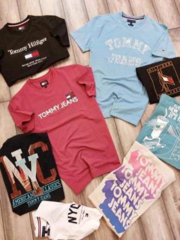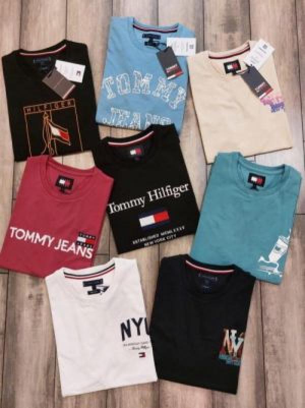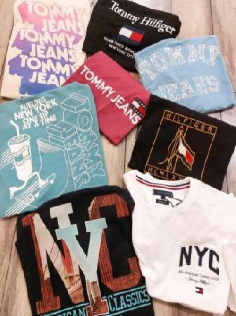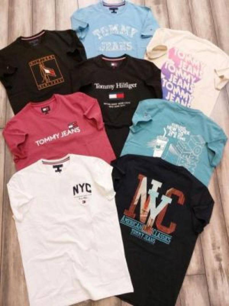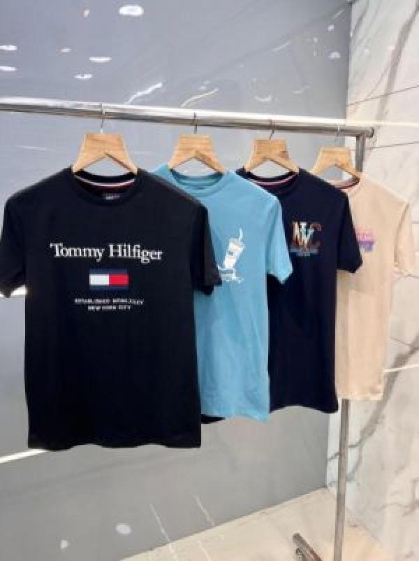 Tomm y Hilfige r Premium Imported Round Neck T Shirts Printed Design Beige 2363