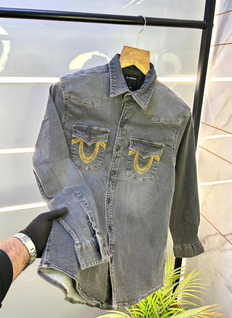 True Religion Logo Grey Super Premium Denim Shirt F3027-GY